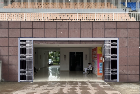 *.项目名称:扬州大学广陵学院操场看台楼疏散通道不锈钢伸缩推拉门项目