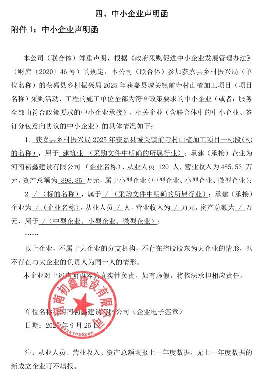 获嘉县乡村振兴局2025年获嘉县城关镇前寺村山楂加工项目结果公告