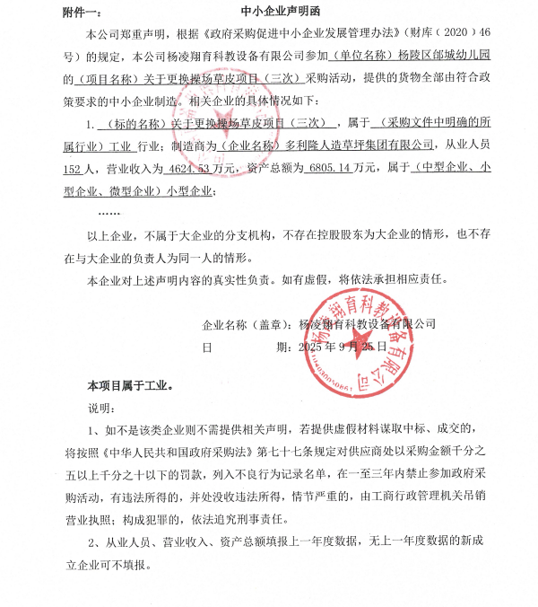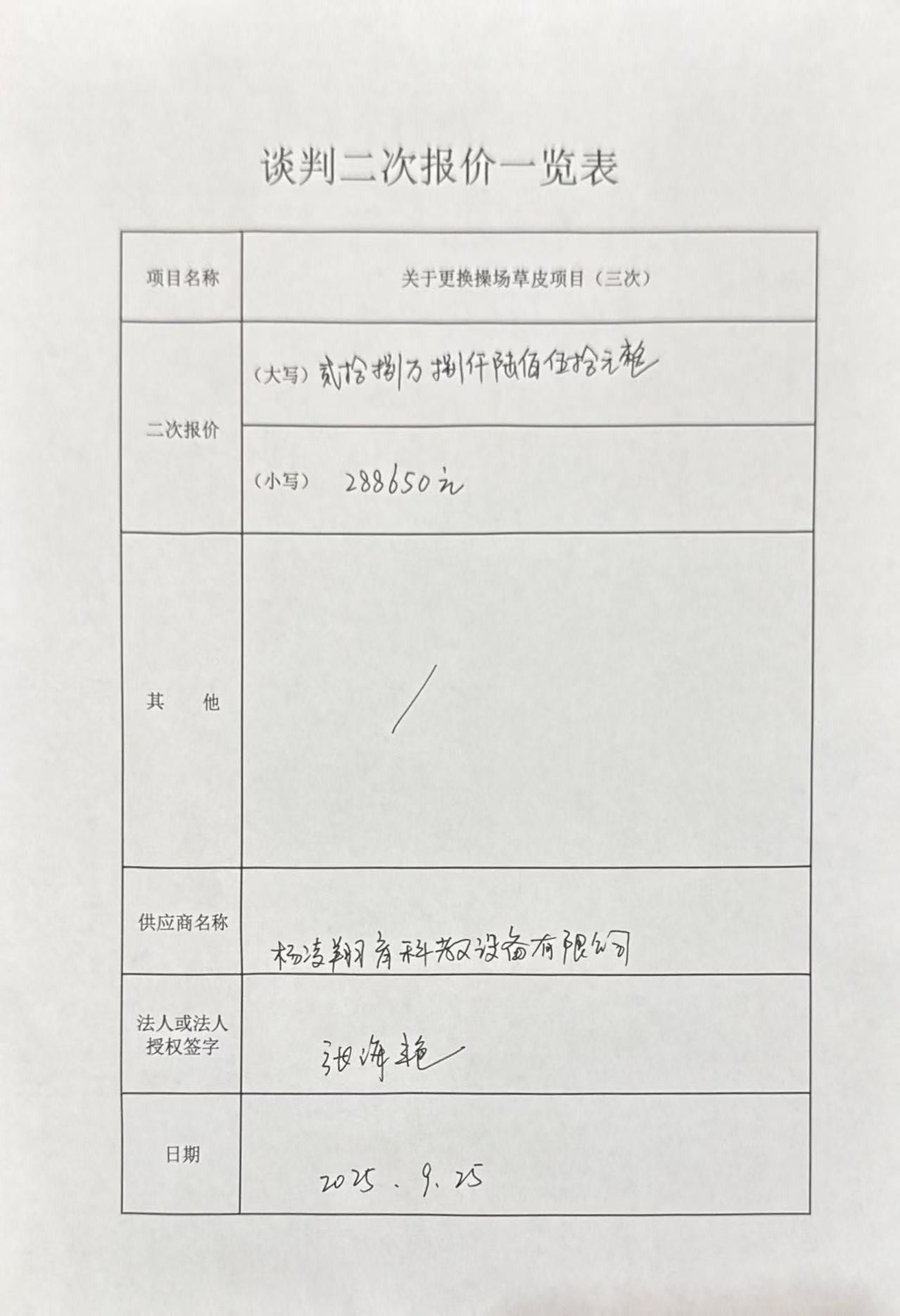 杨陵区邰城幼儿园关于更换操场草皮项目(三次)中标(成交)结果公告