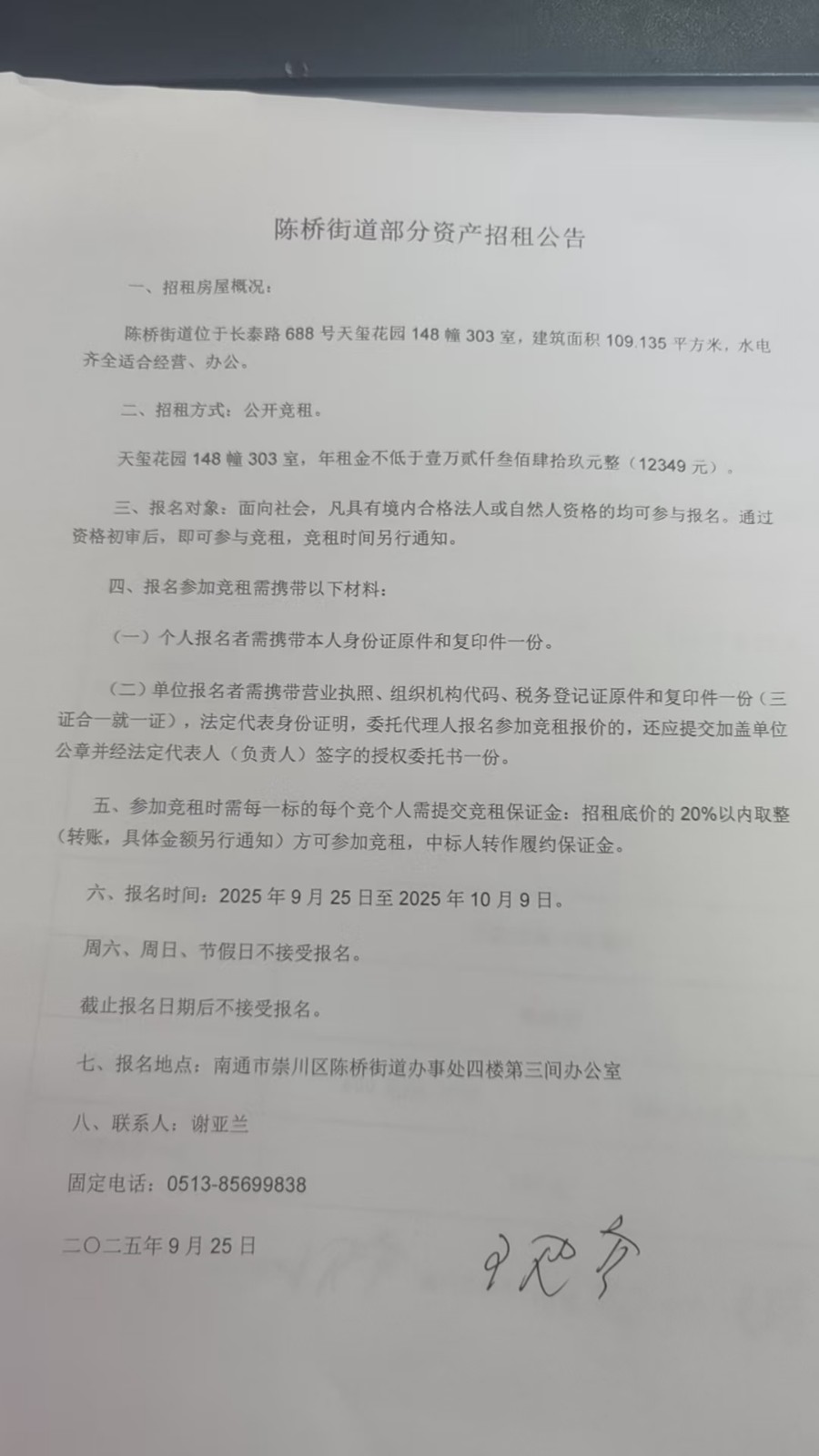 陈桥街道部分资产招租公告 - 一般公示