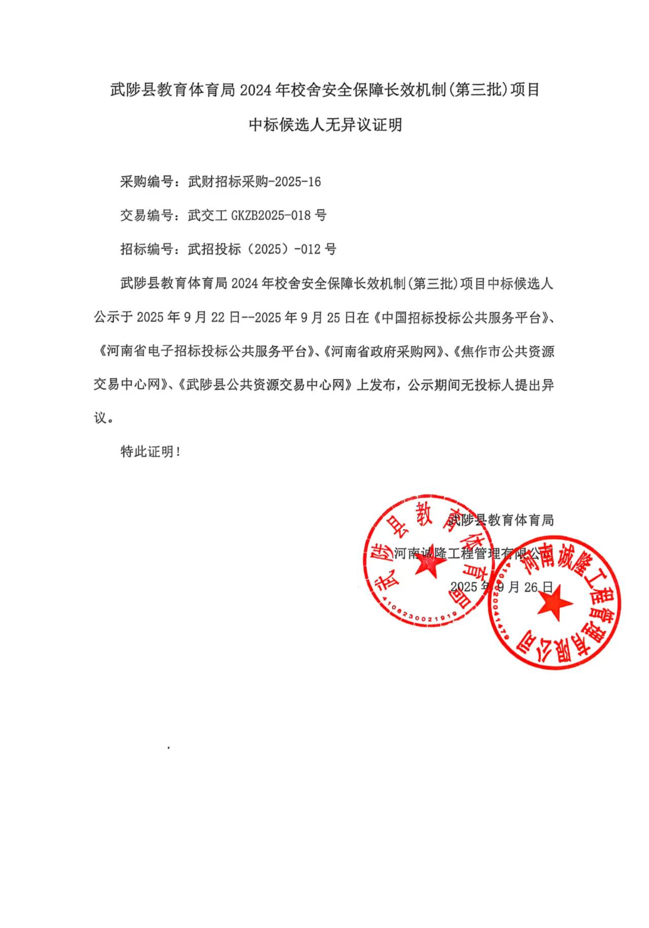 武陟县教育体育局****年校舍安全保障长效机制(第三批)项目*中标公告