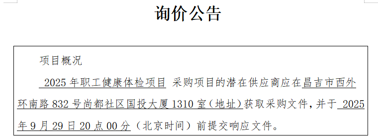 项目名称:****年职工健康体检项目