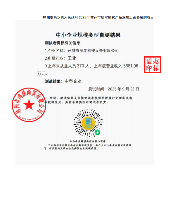 林州市横水镇人民政府2025年林州市横水镇农产品深加工设备采购项目-中标公告