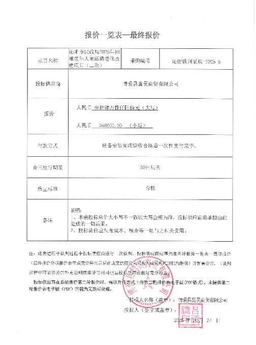 沁阳市民政局2025年困难老年人家庭适老化改造项目(二次)成交公告