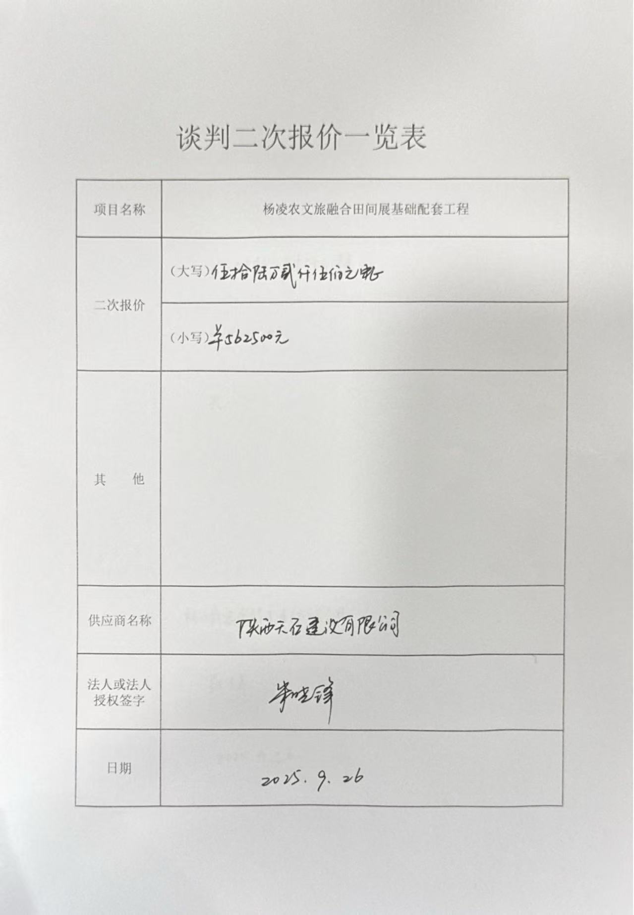 杨陵区农业农村局杨凌农文旅融合田间展基础配套工程中标(成交)结果公告