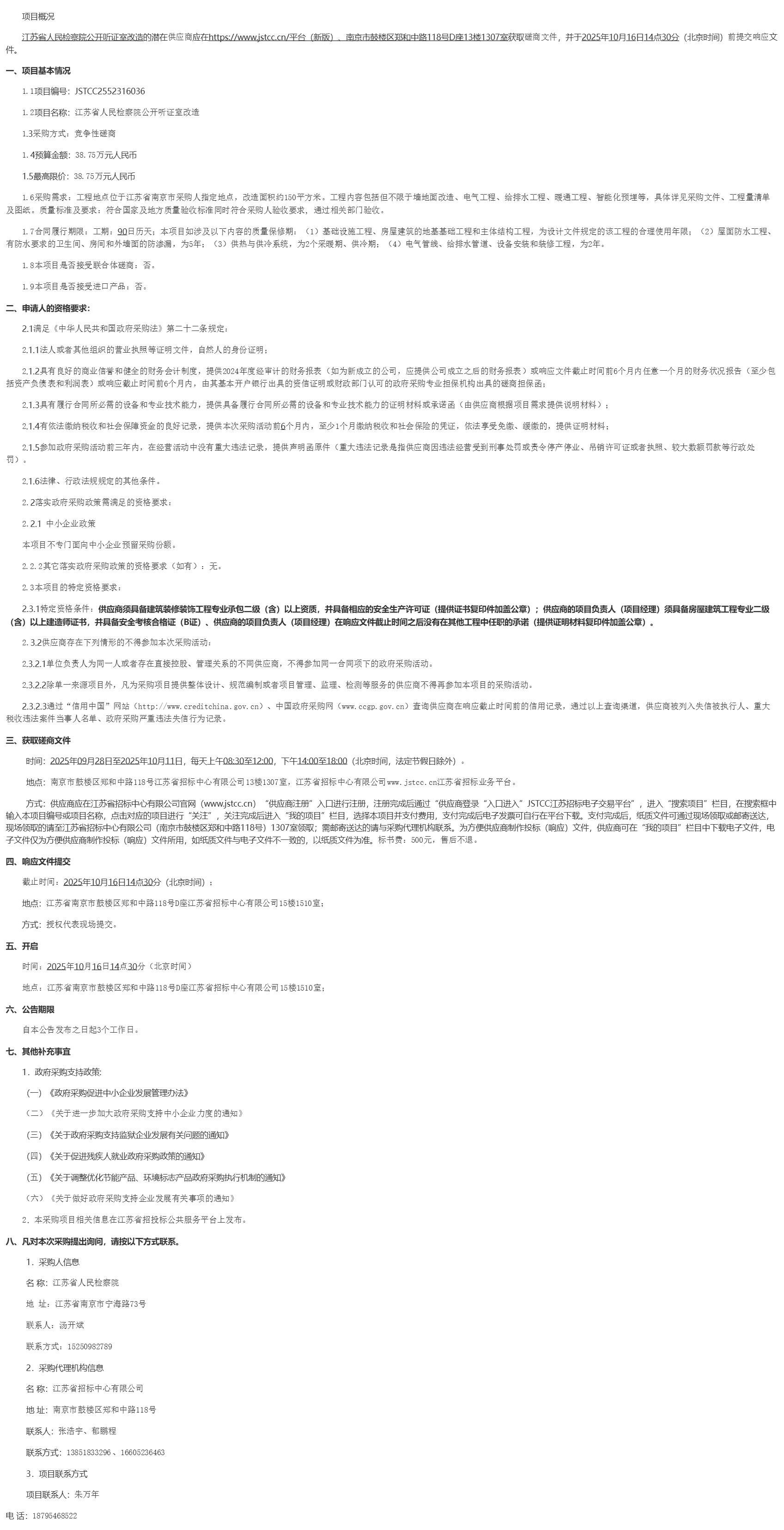 *.*项目名称:江苏省人民检察院公开听证室改造