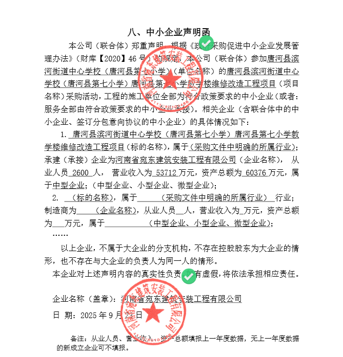 | *、采购项目名称:唐河县滨河街道中心学校(唐河县第七小学)唐河县第七小学教学楼维修改造工程项目 | |||||||||||||||||||||||||||||||