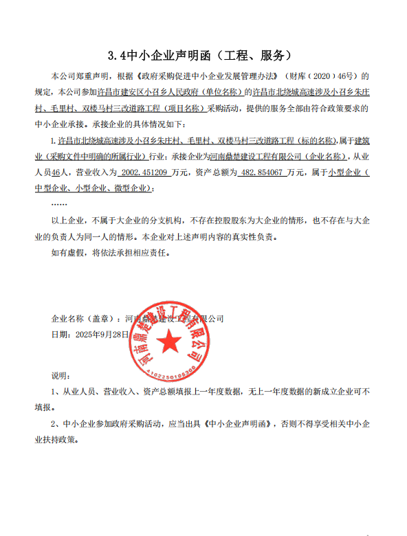 | *、采购项目名称:许昌市建安区小召乡人民政府许昌市北绕城高速涉及小召乡朱庄村、毛里村、双楼马村三改道路工程项目 | |||||||||||||||||||||||||||||||