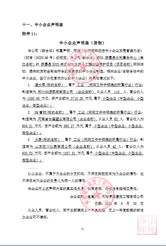 获嘉县水利局获嘉县2025年农村饮水安全工程维修养护项目-成交公告