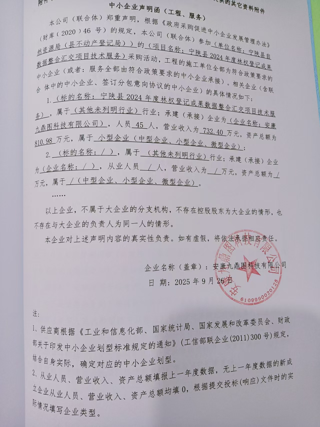 宁陕县自然资源局(县不动产登记局)宁陕县2024年度林权登记成果数据整合汇交项目技术服务中标(成交)结果公告