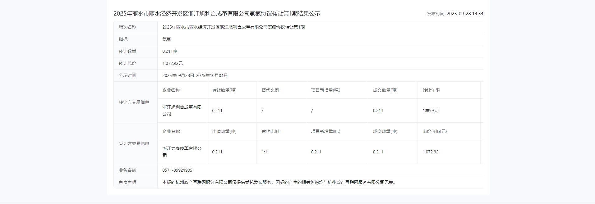 协议转让第1期结果公示成交公示