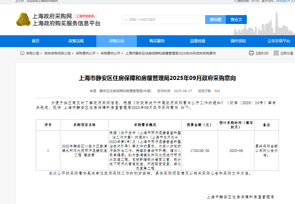 ****年静安区一般片区彭浦镇永和阳光苑雨污混接改造工程 的竞争性磋商公告