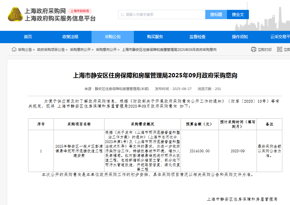 ****年静安区一般片区彭浦镇景峰苑雨污混接改造工程 采购项目的潜在供应商应在上海市政府采购网获取采购文件,并于****年**月**日 **:**(北京时间)前提交响应文件。