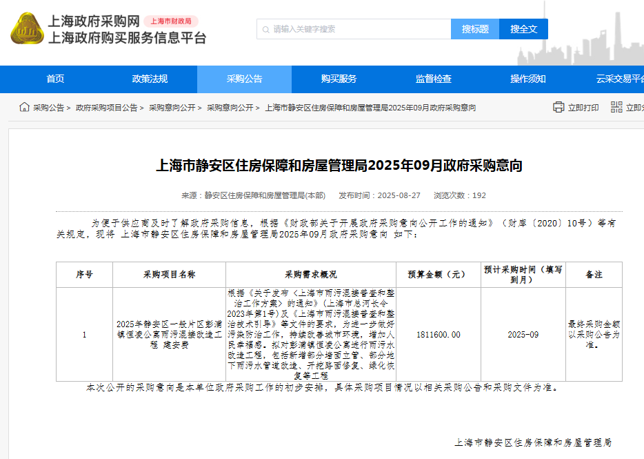 ****年静安区一般片区彭浦镇恒凌公寓雨污混接改造工程 采购项目的潜在供应商应在上海市政府采购网获取采购文件,并于****年**月**日 **:**(北京时间)前提交响应文件。