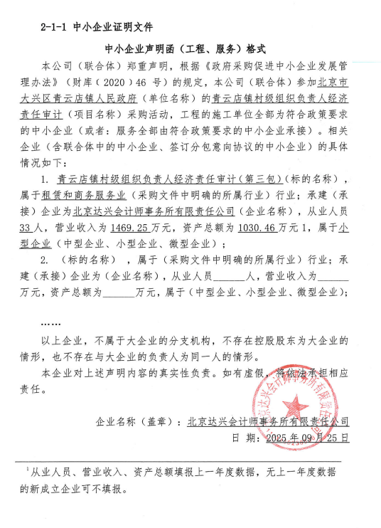 中标成交供应商名称:北京达兴会计师事务所有限责任公司