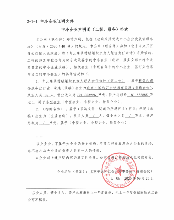 中标成交供应商名称:北京中诚和汇会计师事务所(普通合伙)