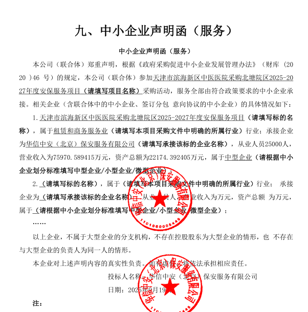 天津市滨海新区中医医院采购北塘院区2025-2027年度安保服务项目...