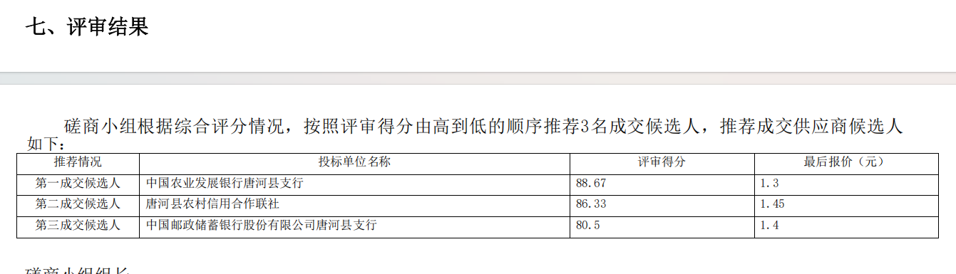 唐河县财政局唐河县被征地农民基本养老保险补贴资金定期存放代理银行服务项目-成交结果公告