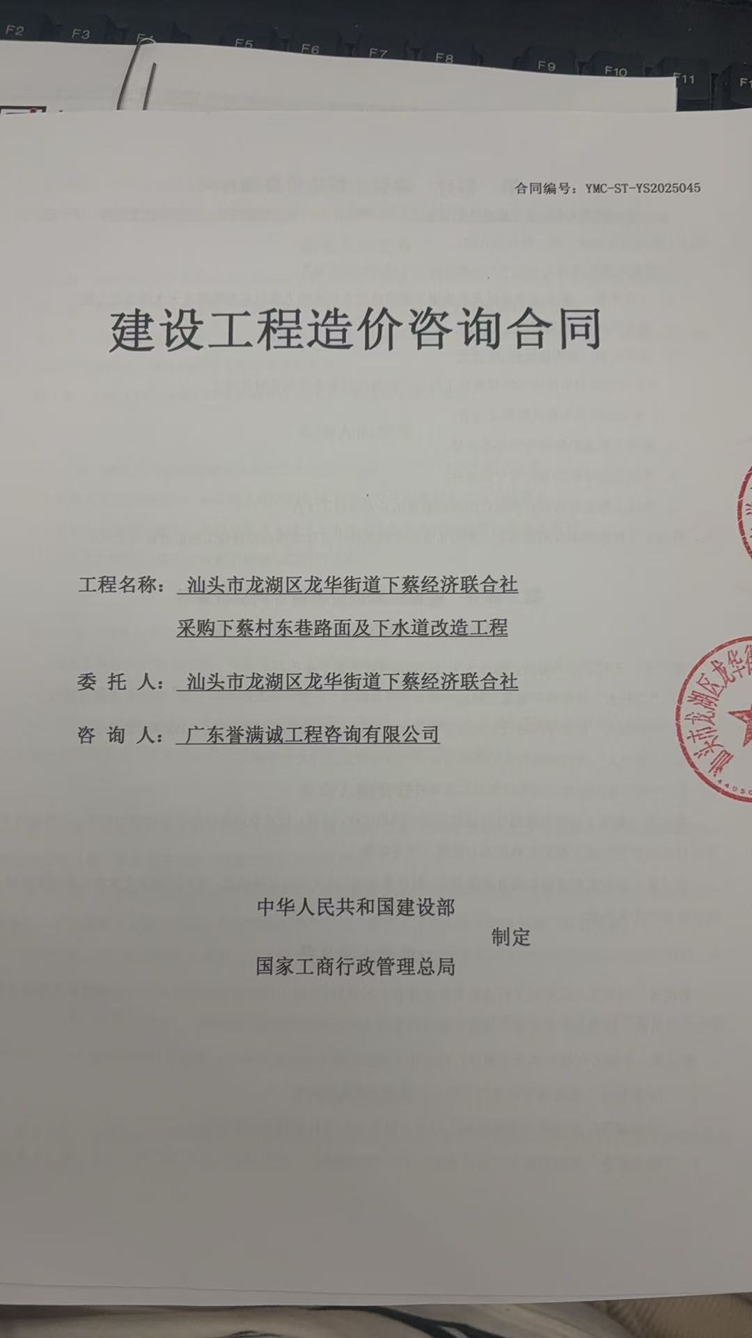 汕头市龙湖区龙华街道下蔡经济联合社采购下蔡村东巷路面及下水道改造工程预算审核服务合同公开