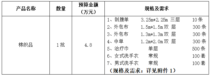 江苏省盐城市亭湖区人民医院关于洗手衣、包布、治疗巾等棉织品项目院内采购公告