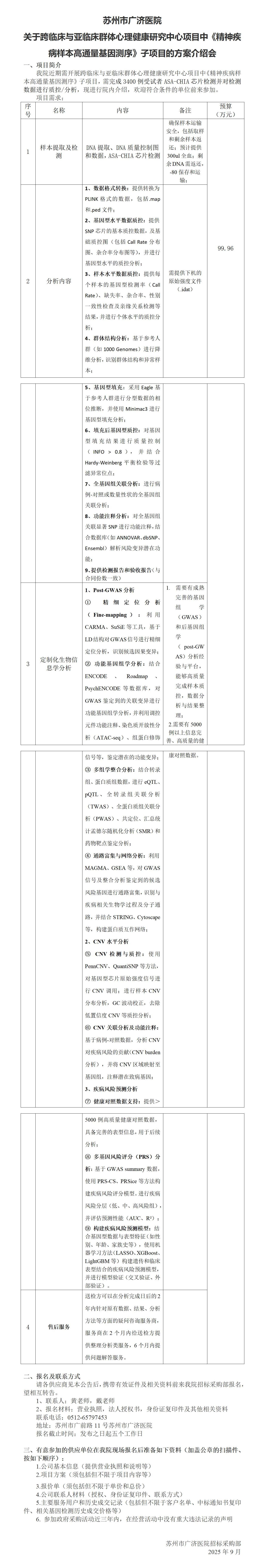 苏州市广济医院关于跨临床与亚临床群体心理健康研究中心项目中《精神疾病样本高通量基因测序》子项目的方案介绍会