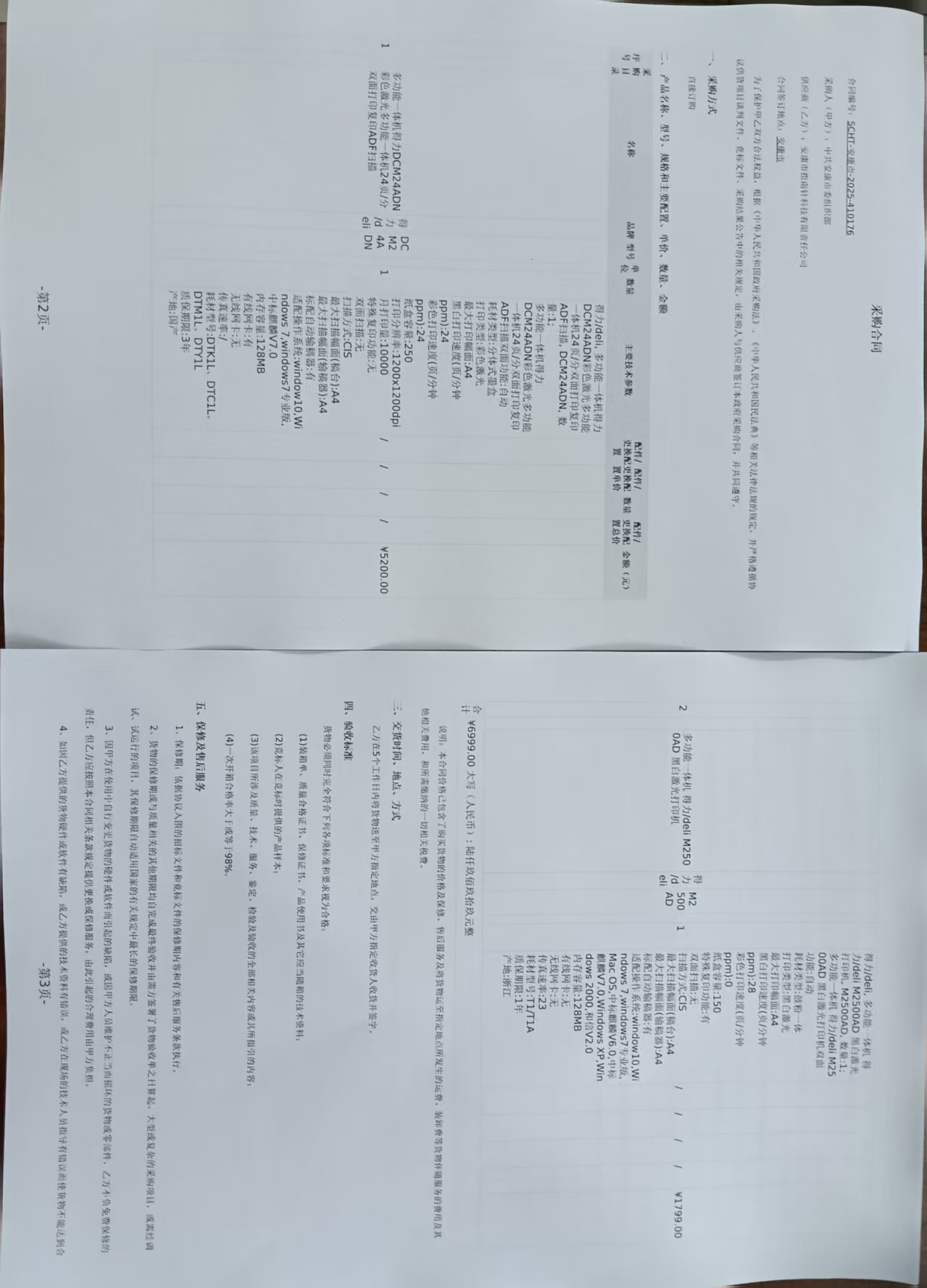 二、合同名称:中共安康市委组织部多功能一体机直接订购采购合同