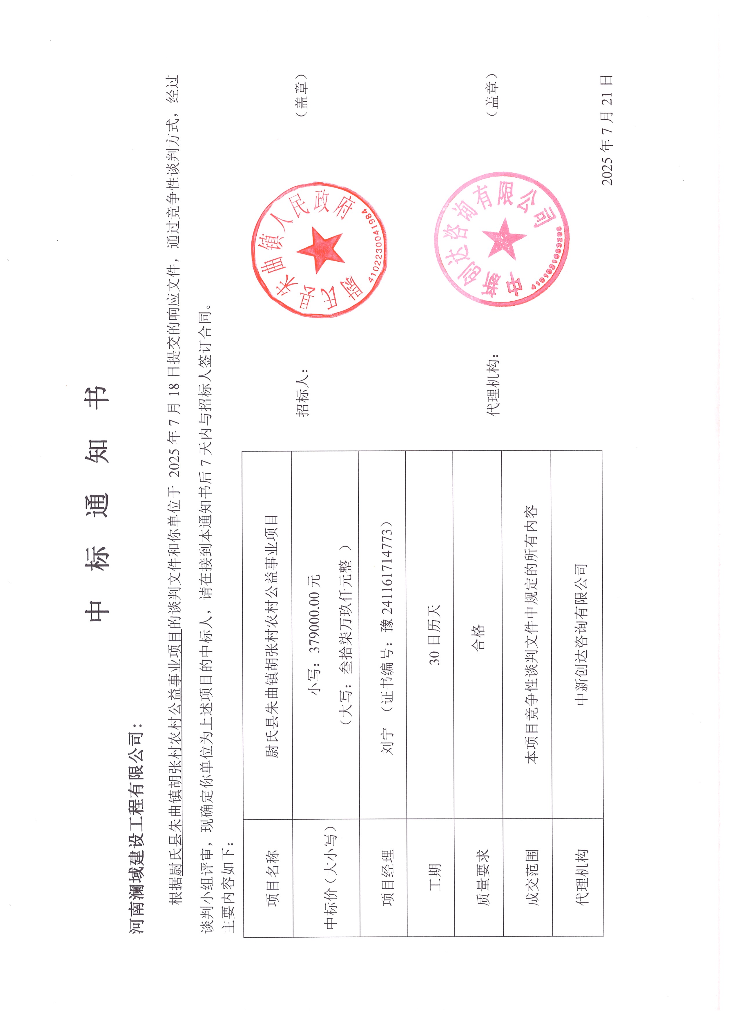 | 二、合同名称:尉氏县朱曲镇胡张村农村公益事业项目 | ||||||||||||