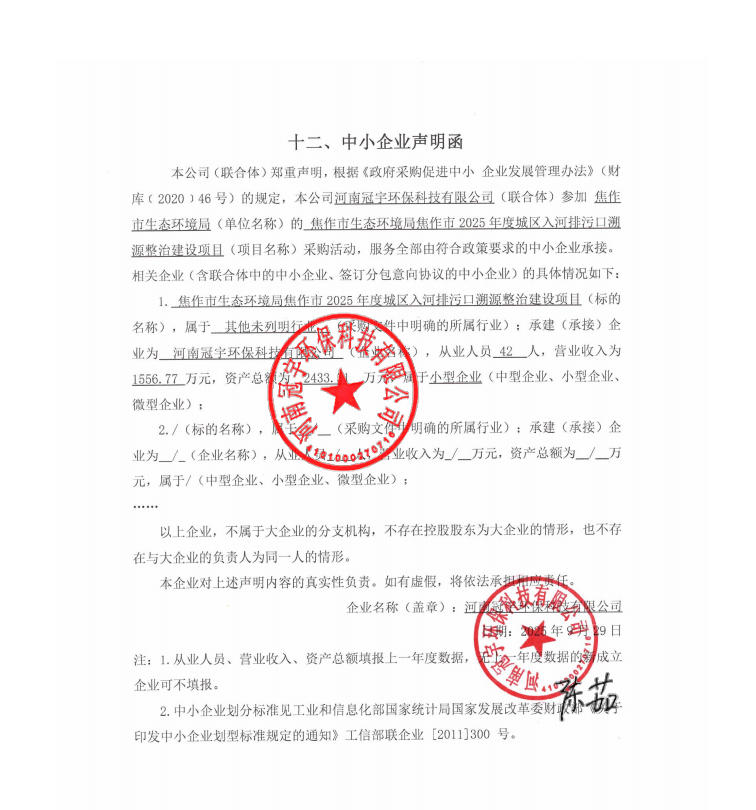 | *、采购项目名称:焦作市生态环境局焦作市****年度城区入河排污口溯源整治建设项目 | |||||||||||||||||||||||||||||||