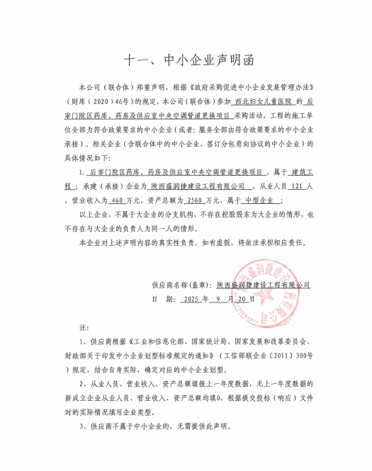 西北妇女儿童医院后宰门院区药库、药房及供应室中央空调管道更换项目中标(成交)结果公告