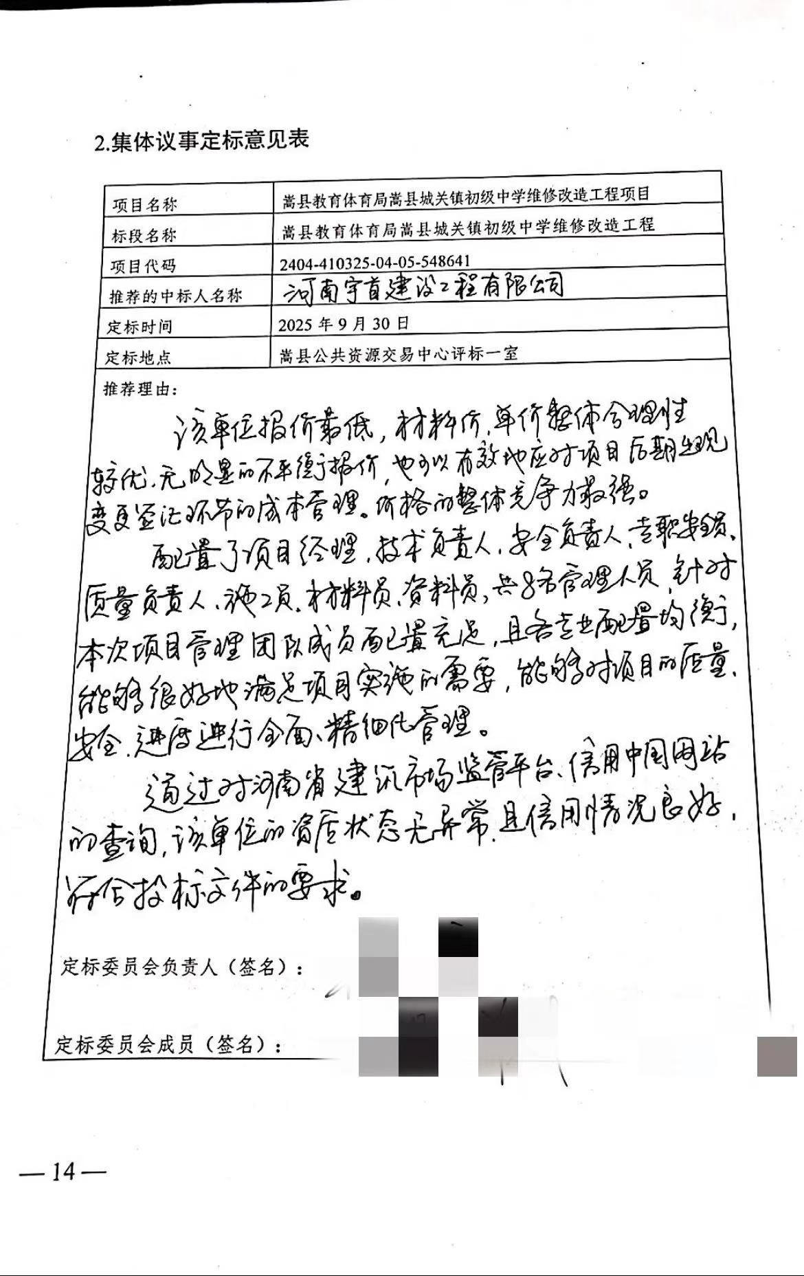 嵩县教育体育局嵩县城关镇初级中学维修改造工程项目*中标结果公示