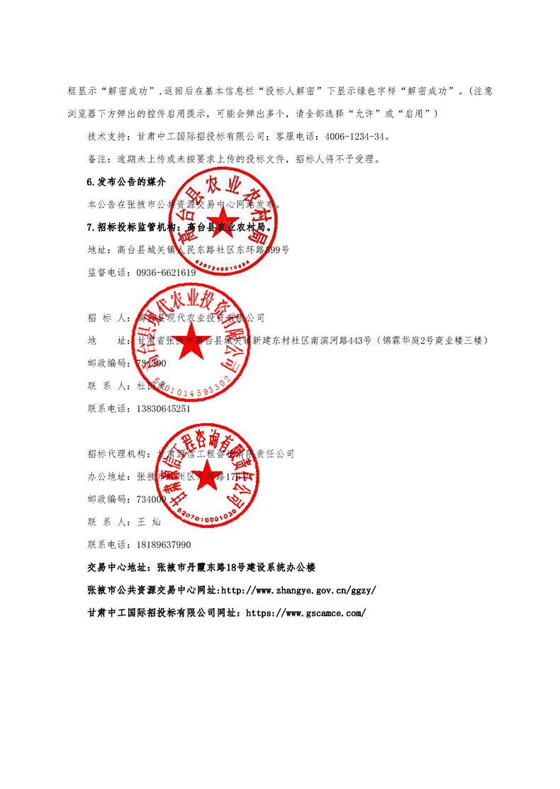 甘肃/张掖 招标采购