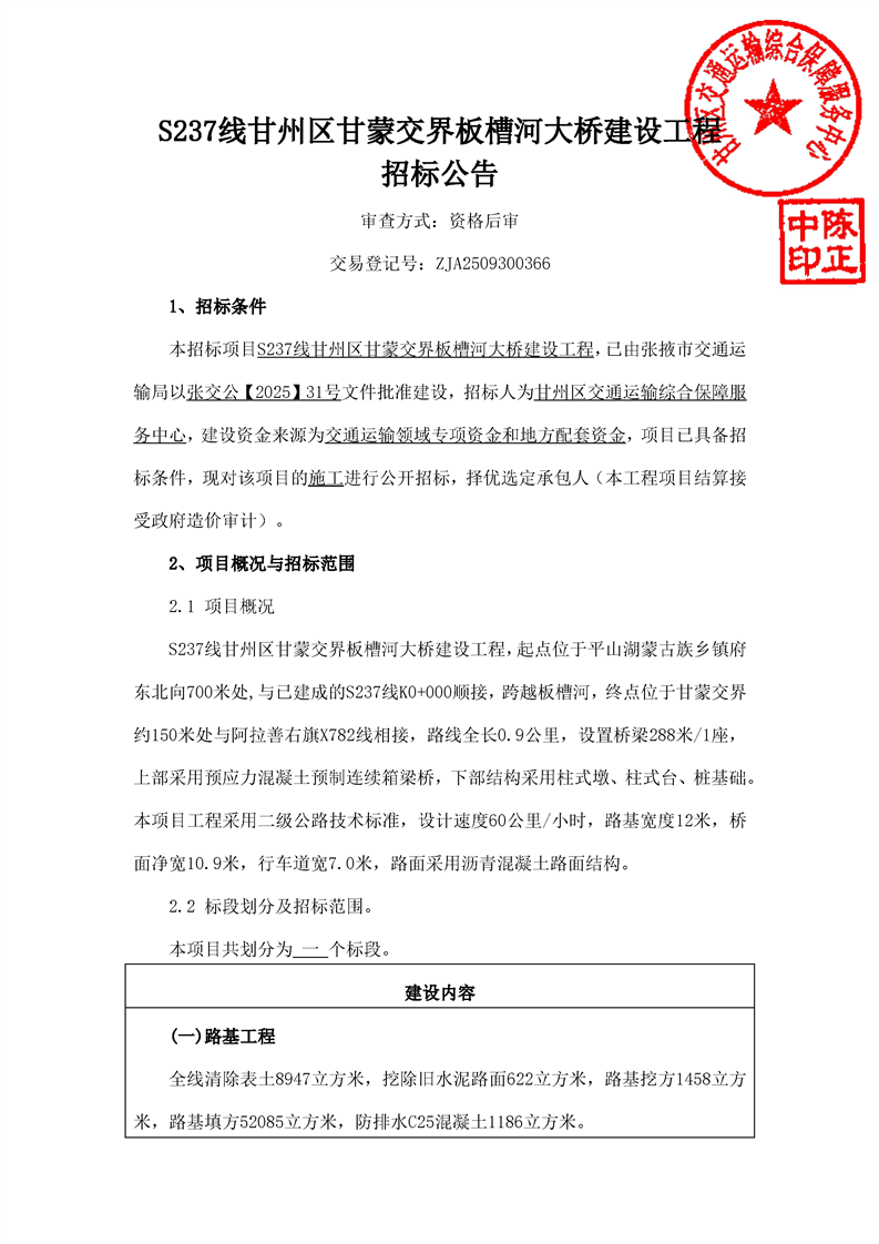 S237线甘州区甘蒙交界板槽河大桥建设工程