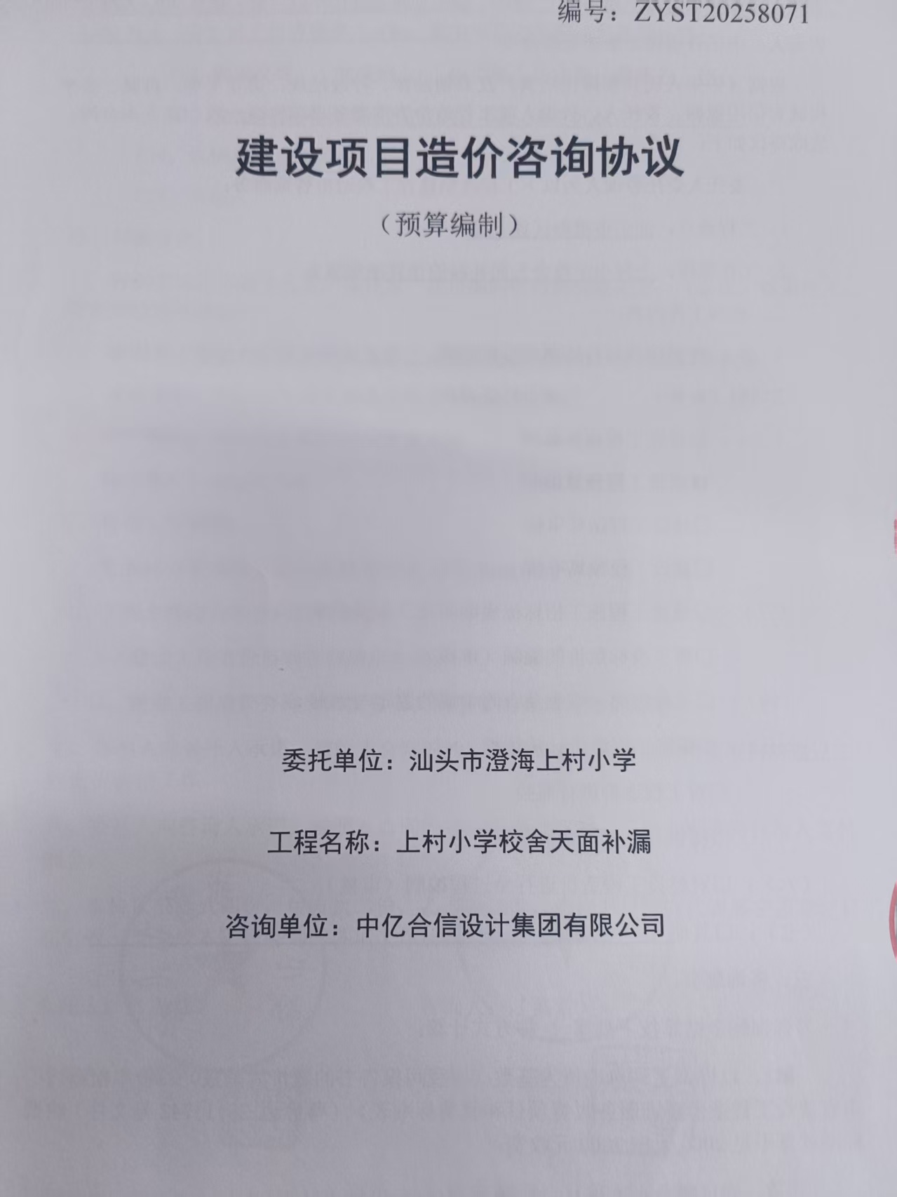 上村小学校舍天面补漏(预算造价)合同公开