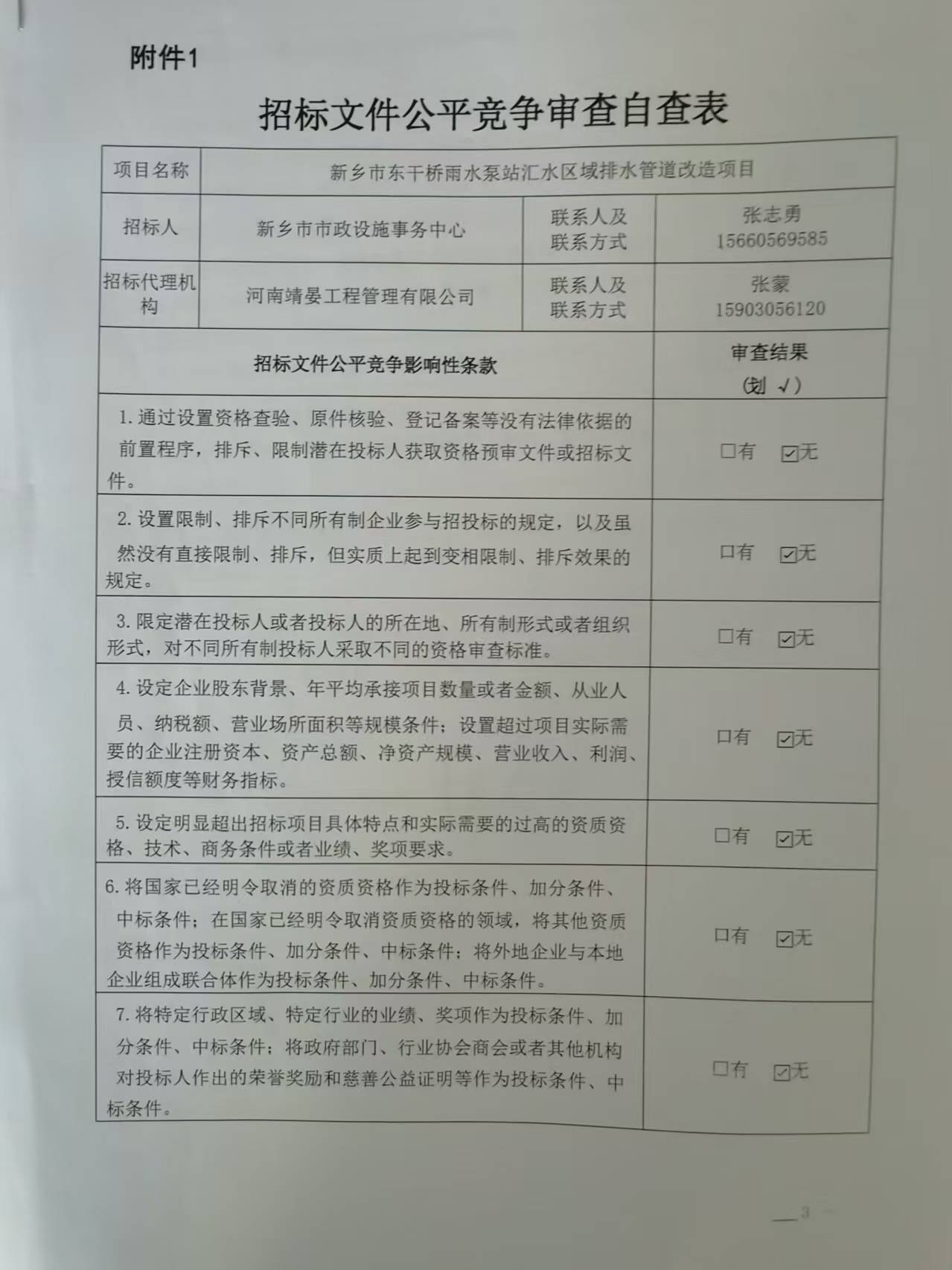 新乡市东干桥雨水泵站汇水区域排水管道改造项目招标公告
