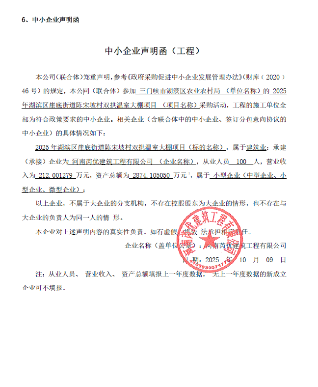 2025年湖滨区崖底街道陈宋坡村双拱温室大棚项目-成交公告