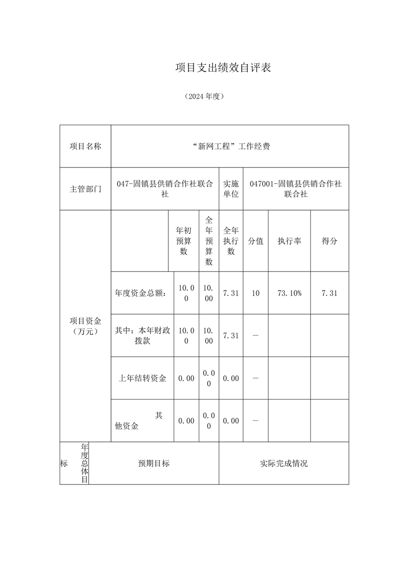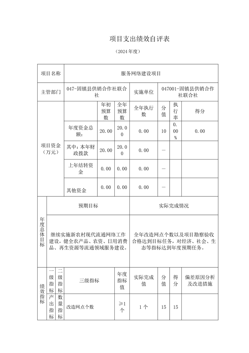 固镇县供销社2024年项目绩效自评结果和绩效评价报告
