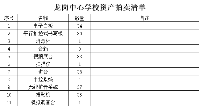深圳金槌拍卖行拍卖公告(龙岗中心学校报废资产一批)