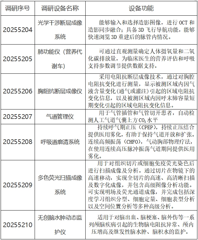中日友好医院对光学干涉断层成像系统等设备市场调研公告
