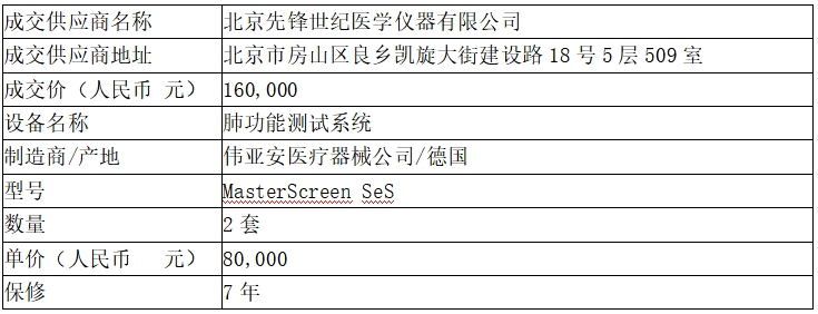 中日友好医院****年肺功能测试系统采购项目成交结果公告