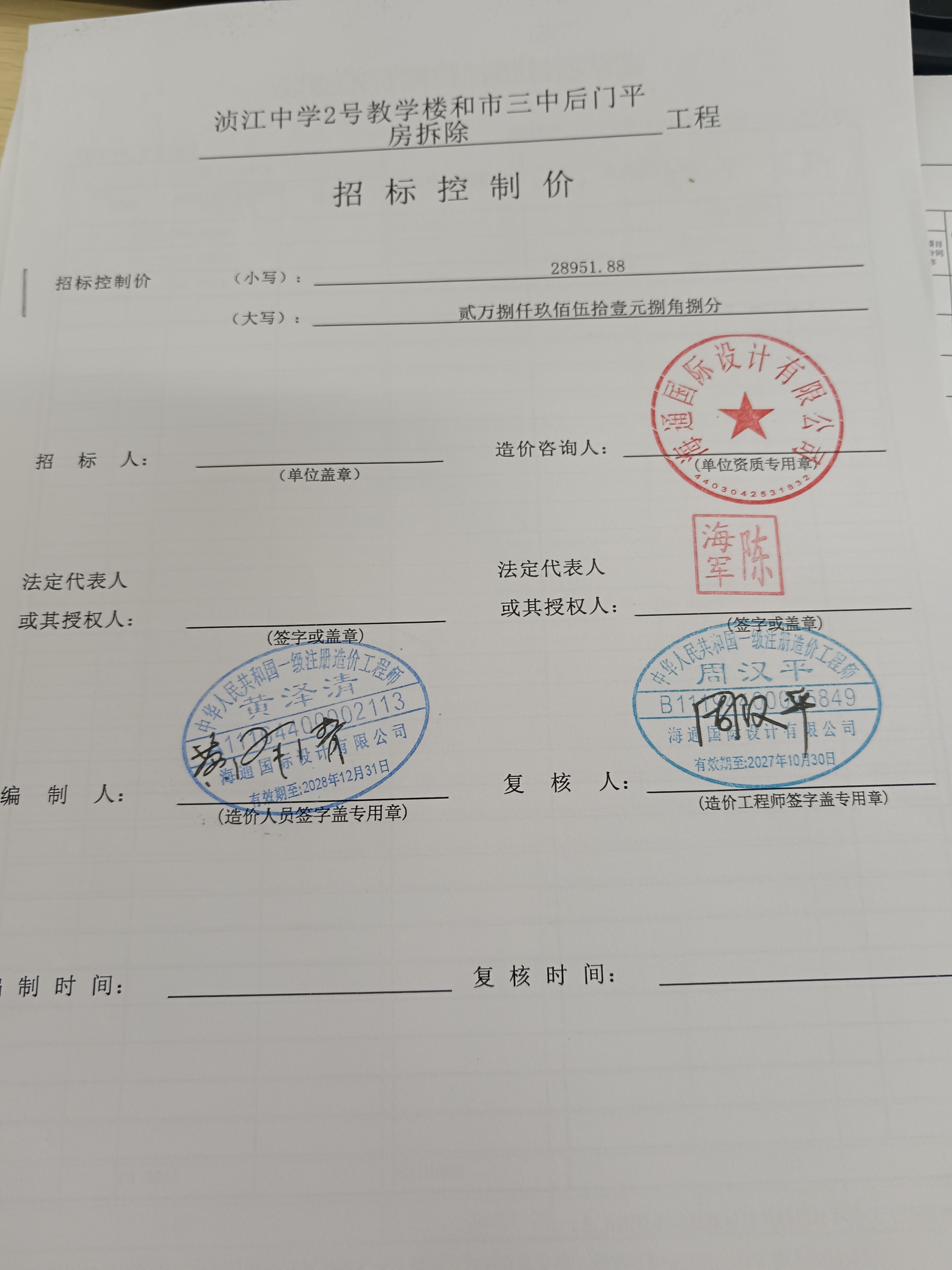 *.项目名称:浈江中学教学楼*号(*级危楼)和市三中后门平房拆除项目