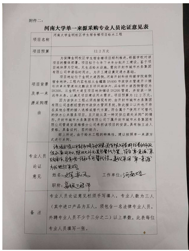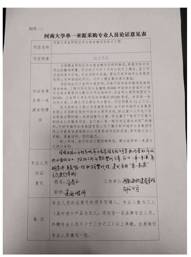 河南大学金明校区学生宿舍楼项目给水工程单一来源采购公示