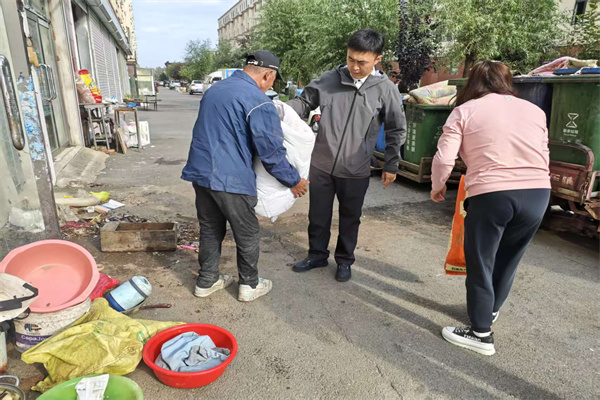 福民街道桥西社区福兴家园小区车库居住一位特殊的老人,他与*只小狗为伴,夏天居住在拾荒的菜地头,天气冷了回到车库,车库内杂物堆积、卫生条件较差,破损的玻璃不仅影响居住安全,更难以抵御外界风寒,社区多次入户,终于说服了老人将车库进行彻底清理,桥西社区人大代表也发挥力量,为老人送去温暖关怀,消除安全隐患。