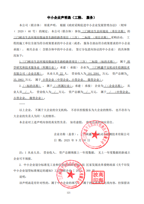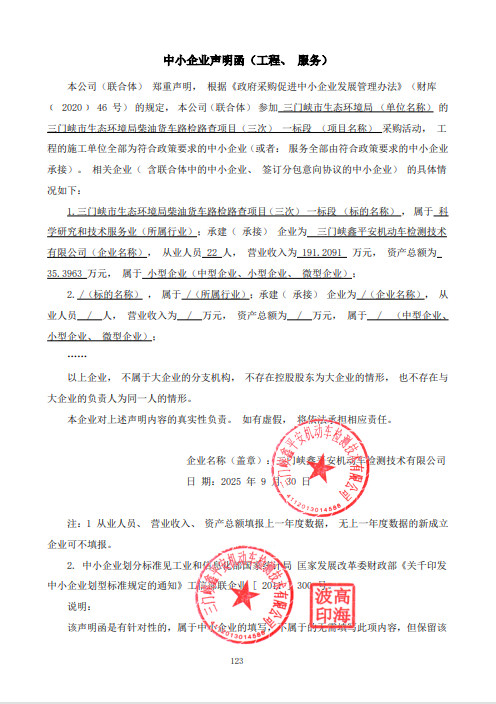 三门峡市生态环境局柴油货车路检路查项目(三次)-成交公告