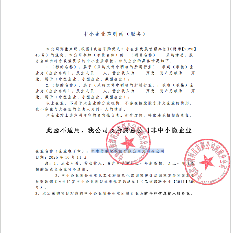 | *.服务内容:本项目是洛阳市民政局洛阳殡仪馆扩建改造项目中智慧殡葬一期(洛阳殡仪馆便民综合业务服务管理平台)采购,采购的主要内容为:便民综合业务服务管理软件系统(包含*个子系统,*个线上服务平台)、便民综合业务服务管理配套智能硬件、三方系统及物联网硬件对接开发三部分。地点在洛阳市老城区后洞村。 *.资金来源:财政资金 *.服务要求:符合国家及行业相关规范和要求,满足采购人的相关要求 *.标包划分:本项目划分*个标段(包) *.服务期:自合同签订后**日历天内完成安装、建设、调试、运行并达到正常使用状态一个月后进行验收;并在验收合格后提供*年质保服务(所投软硬件产品)。 *.合同履行期限:同服务期 *.本项目是否接受联合体投标:否 *.是否接受进口产品:否 *.是否专门面向中小企业:否 | |||||||||||||||||||||||||||||||