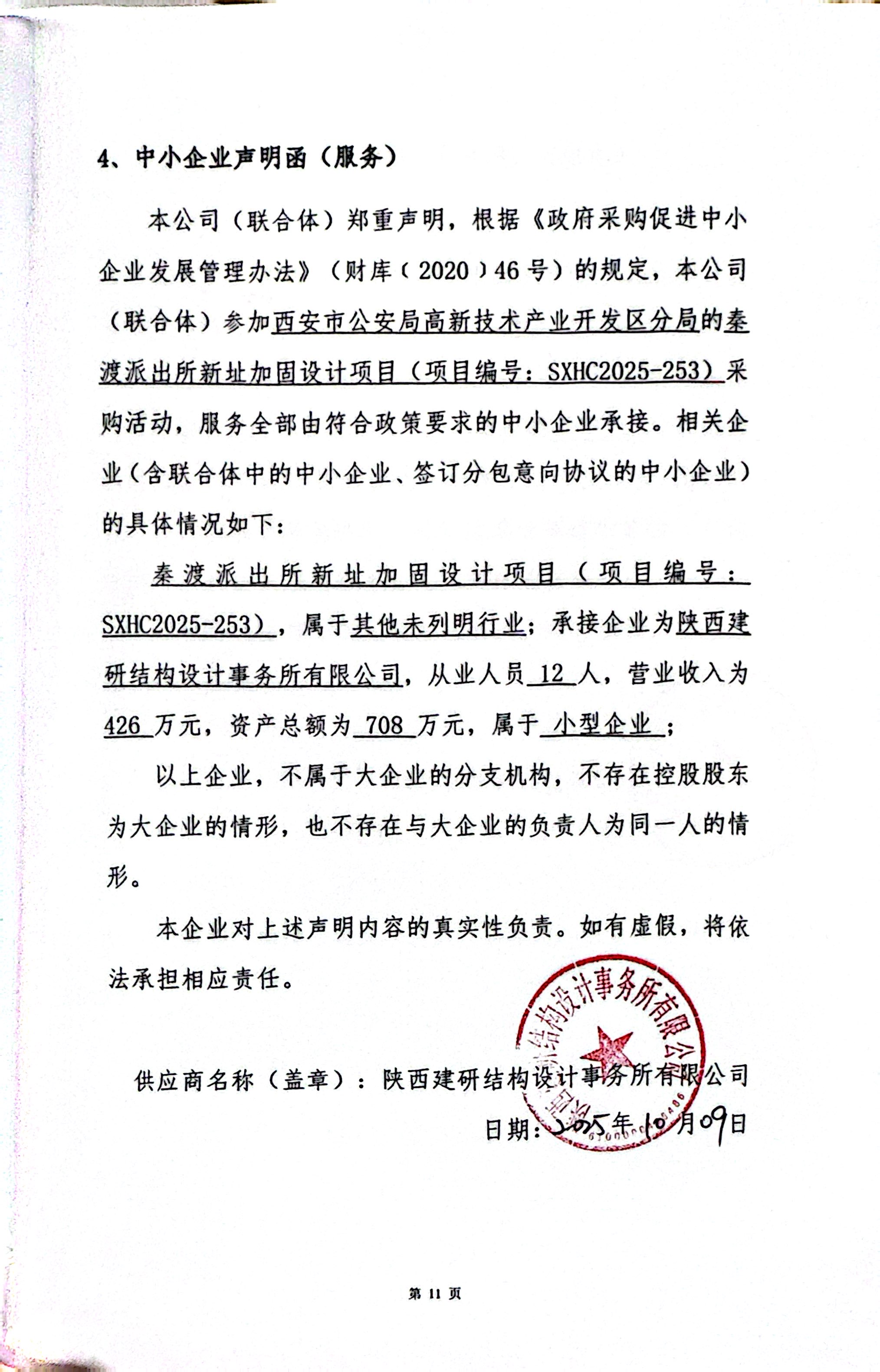 西安市公安局高新技术产业开发区分局秦渡派出所新址加固设计项目中标(成交)结果公告