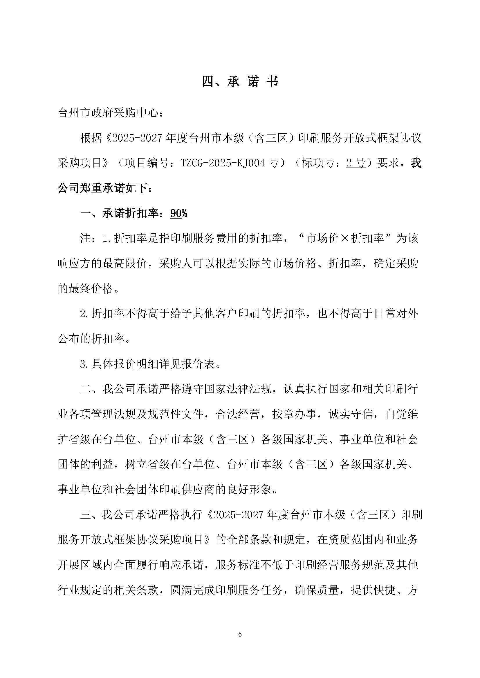 项目名称:*********年度台州市本级(含三区)印刷服务开放式框架协议采购项目