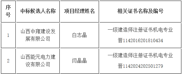 山西襄矿集团售电有限公司太平***千伏输变电工程久安**太平***千伏输电线路工程施工项目中标候选人公示