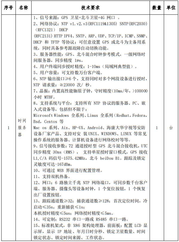 根据甘肃医学院附属医院《招标采购管理办法》规定,我院拟对以下项目进行院内询价方式采购,欢迎符合资格条件的供应商前来报名。现将有关事项说明如下: 采购项目:甘肃医学院附属医院时间服务器采购项目 一、采购内容: *.采购需求: 二、质量标准: 合格。如达不到合格标准,乙方负责整改直至达到合格标准为止。 三、服务要求: *.所投产品必须为原装正品并提供售后服务承诺函,必须按生产厂家承诺的售后服务条款提供各项售后服务。 *.报价应包括对投标产品的安装、售后服务、技术培训、保险、及合同包含的所有风险、责任等各项应有费用。 *.所投产品提供不少于*年的免费授时及校准服务。 *.需免费送货上门并验收合格后将设备安装到指定地点。 *.供应商需提供****小时电话响应和*小时内上门售后服务。 四、采购预算: *****.**元(投标人报价包含采购、运输、利润、税金等一切相关费用,不得以任何方式任何理由索取其他费用。投标人报价不得高于此限价,否则视为无效报价,将取消投标资格) 五、交货期限:合同签订后**日内 六、交货地点:甘肃医学院附属医院指定地点 七、结算方式: 设备安装完成验收通过**个工作日后付款,一次性付清(无息)。 八、供应商资格要求: 具有独立承担民事责任的能力(须提供有效的营业执照、组织机构代码证、税务登记证(三证合一只需提供营业执照副本)。 九、响应文件递交时间: 从即日起至****年**月**日**:**前,按公告要求准备相应资料并装订成册,邮寄至甘肃省平凉市崆峒区崆峒东路***号甘肃医学院附属医院办公楼***室。 十、响应文件开启: 时间:****年**月**日 **:** 地点:甘肃医学院附属医院办公楼***室 十一、报价方式: (一)提供完整详细的服务项目报价表。 (二)投标人的报价为一次性报价,即在询价有效期内价格固定不变,其投标报价均包括出厂价、货物到达最终地点的相关运输费、装卸费和安装费等相关费用,报价超过采购预算或明显低于行业成本的恶意低价报价均为无效报价。 (三)供应商应提供的有关资料:营业执照、报价表等相关证件并加盖公章,格式自拟。 十二、评审方法: 询价成交原则:询价小组按询价公告和投标人提供的响应文件评审,在资质条件、采购需求均满足的同等条件下,以报价最低中标。 十三、联系方式: 联系人:张老师 联系电话:*********** 信息管理科 ****年**月**日