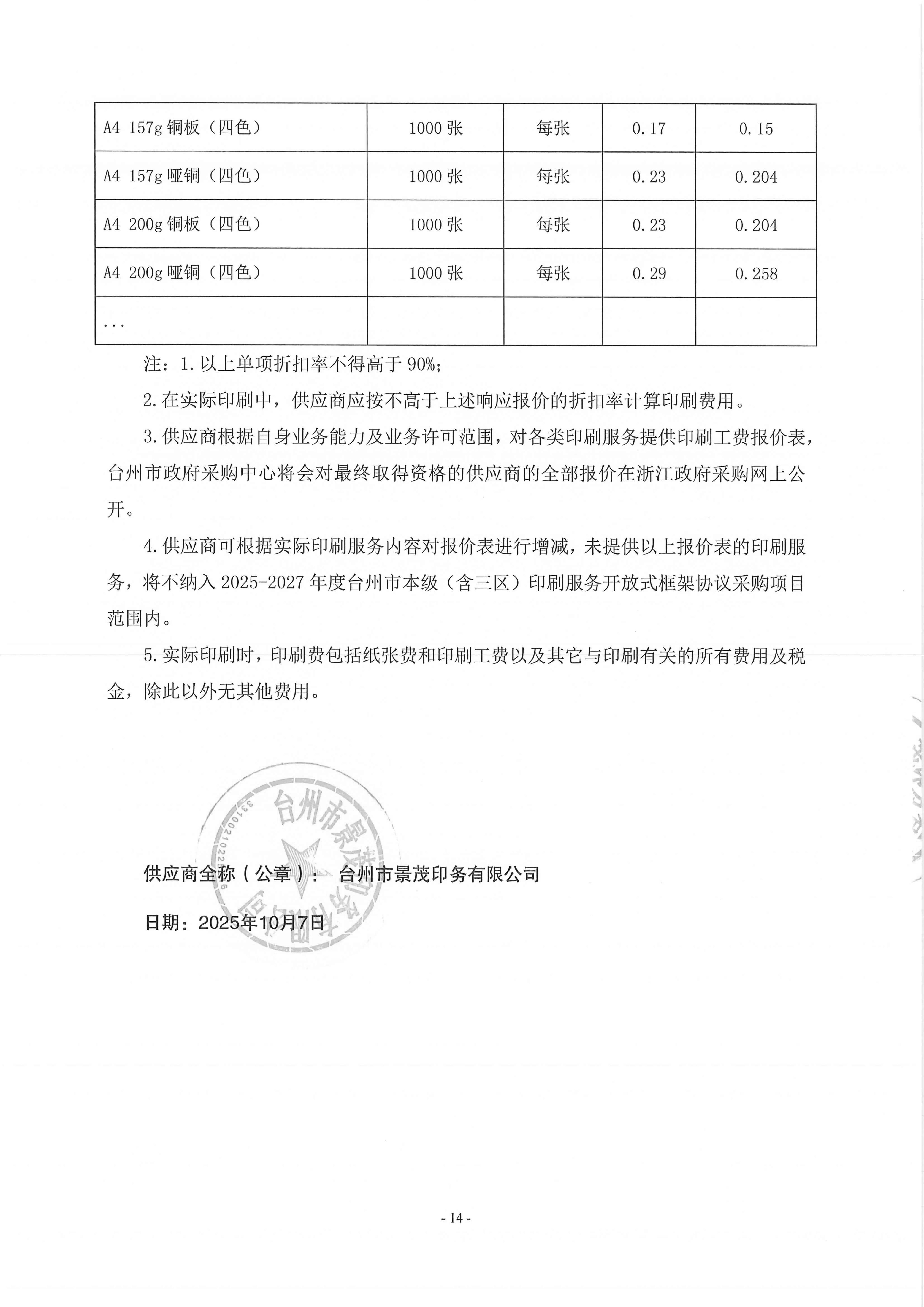 台州市景茂印务有限公司入围2025-2027年度台州市本级(含三区)印刷服务开放式框架协议采购项目的结果公告