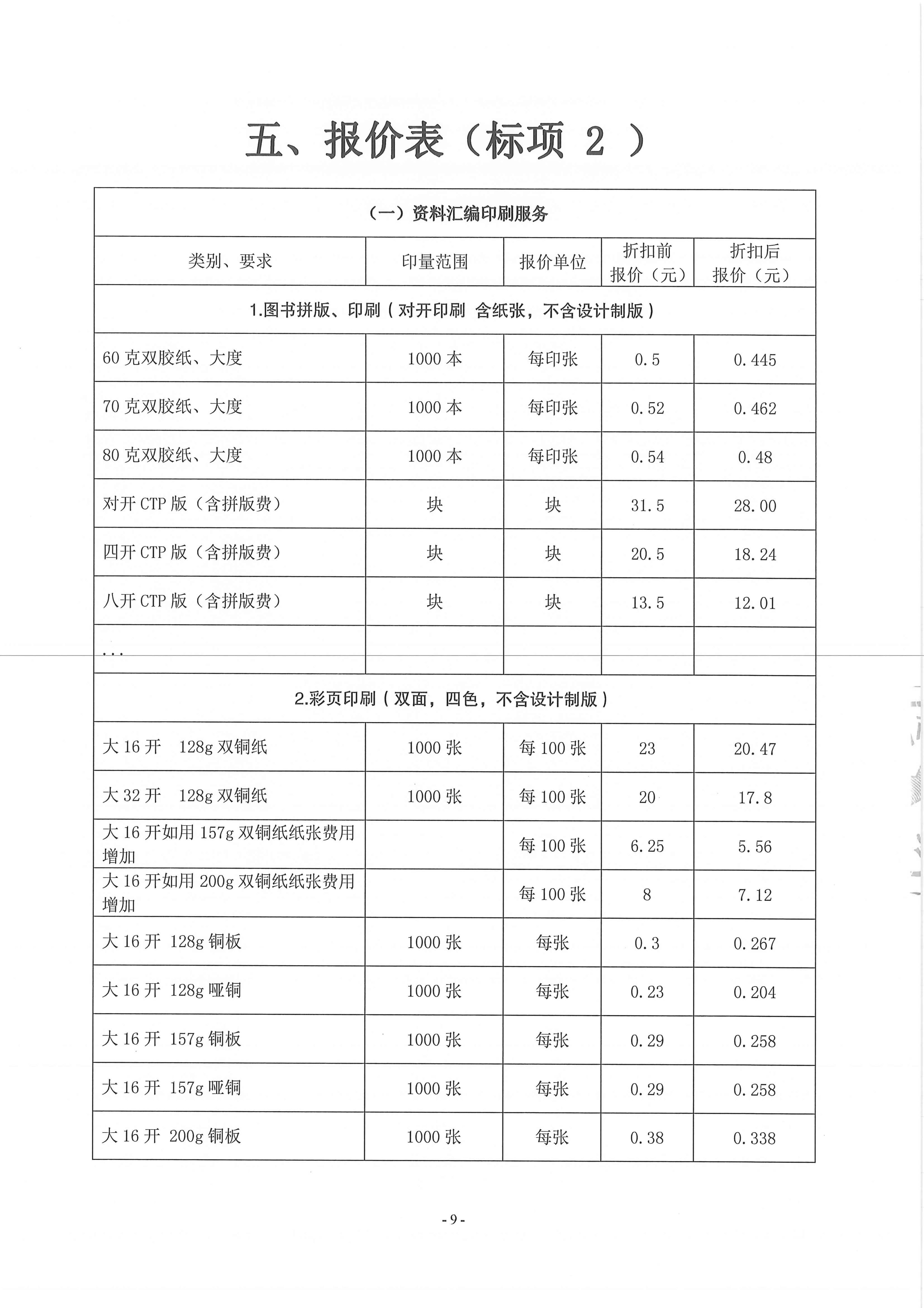 印刷服务(其他印刷品)